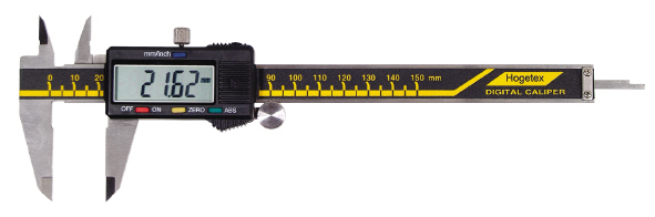 Schuifmaat met digitale aflezing, voorzien van een extra groot display. Aflezing 0,01mm/0,0005". 0 stelling in elke positie. Schuifmaat voorzien van klemschroef. Automatische uitschakeling. Absoluut/incrementeel omschakelbaar. Voor binnen-, buiten-, en dieptemetingen. Schroefdraadtabel. Verpakt in kunststof doos.